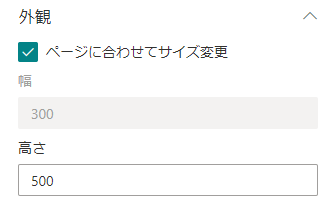 この横幅の調整は、Web パーツのプロパティから幅を指定することで任意のサイズにすることができますが、[ページに合わせてサイズ変更] というチェックボックスにチェックを入れるとページの横幅に合わせてクライアント Web パーツの横幅を自動調整してくれるようになります。