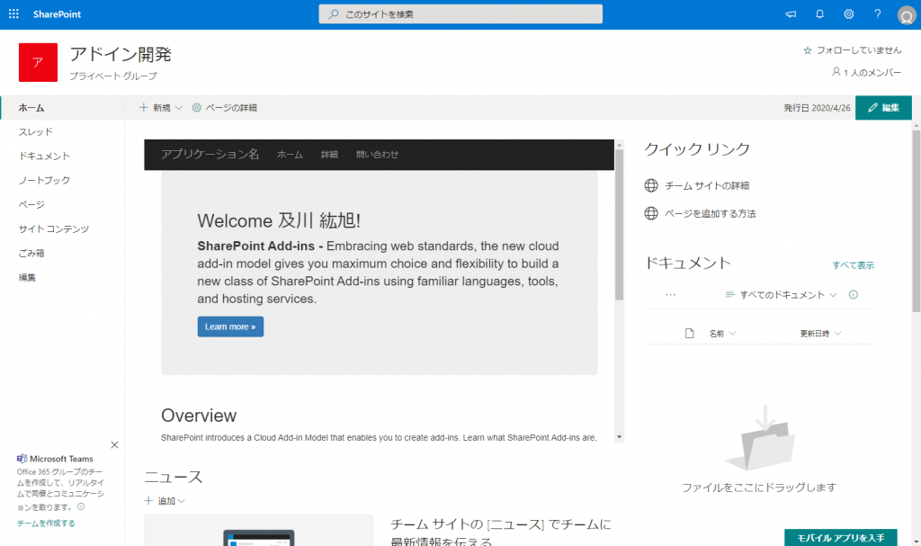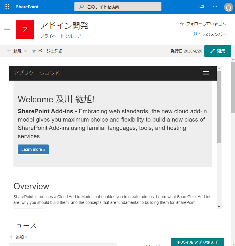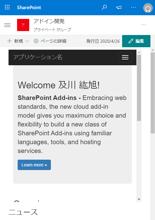 別記事で SharePoint アドインが SharePoint Online でも使えることを記載しましたが、そうやって開発したクライアント Web パーツをモダンページに配置するとどうなるのか確認してみました。 SharePoint アドインのクライアント Web パーツはモダンページが登場する前からあった技術なので、レスポンシブが前提のモダンページにうまくはまってくれるのか、そこが最も気になっていた部分です。 参考: SharePoint Online で SharePoint アドイン(プロバイダーホスト型)を使用する