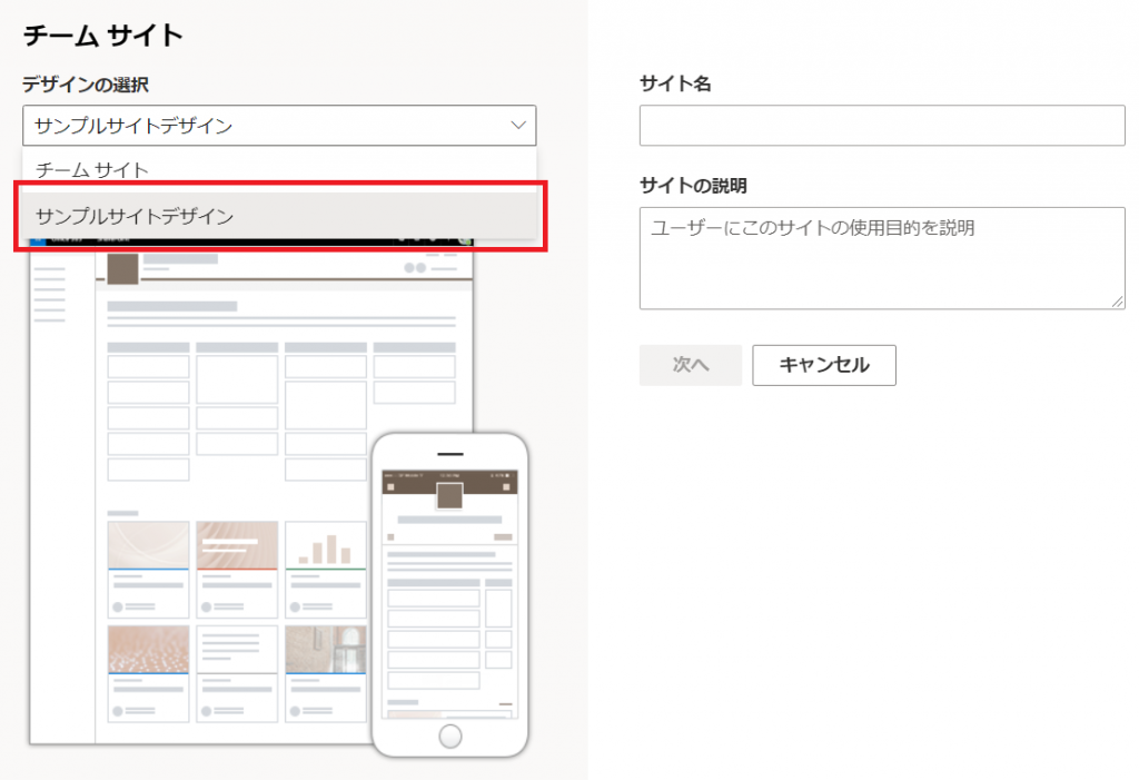 無事登録できると、下図のようにサイト作成時に「デザインの選択」の欄に作成したサイトテンプレートが表示されます。