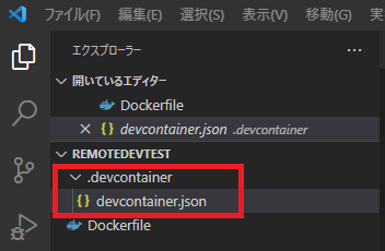 以上の設定を終えることで、「.devcontainer」フォルダ内にコンテナの情報を定義する「devcontainer.json」ファイルが作成されます。