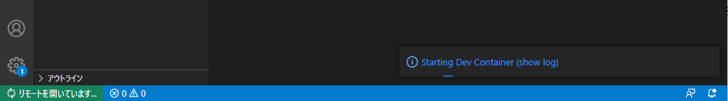 なお、コンテナの初回接続時はコンテナがビルドされるため、接続されるまで数分かかることがありますので気長に待ちましょう。