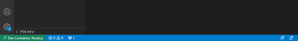 その後、しばらくするとステータスバーの表示が「Dev Container: Node.js」に変わり、コンテナ上でプロジェクトが開かれた状態になります。