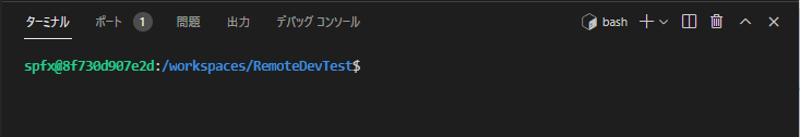 この状態でターミナルを開くと以下の通り bash シェルが起動した状態になっています。
