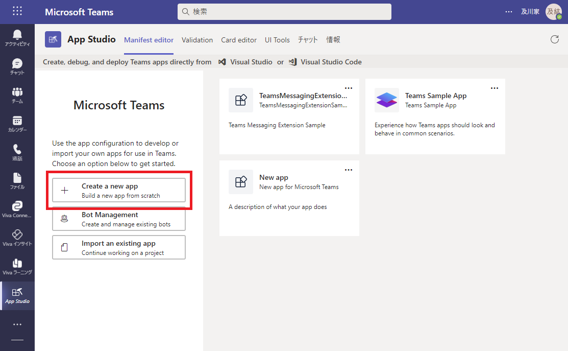 独自アプリを Teams で使えるようにするには、まずはアプリの定義ファイルを作成します。